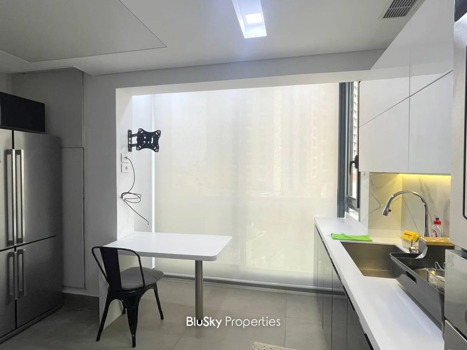 External Windows and doors are double glazed, Double Walls, Kitchen installed (Counter top + Cabinets), A/C Installed and much more !