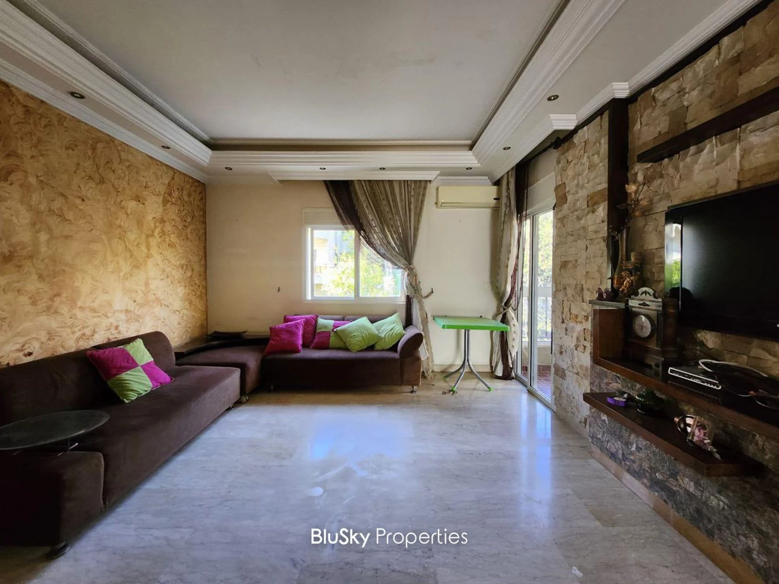 External Windows and doors are double glazed, Double Walls, Kitchen installed (Counter top + Cabinets), A/C & Chimney Installed and much more !