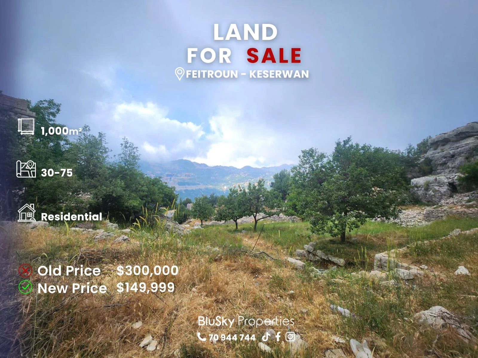 Land 1,000m² For SALE In Feitroun #YM