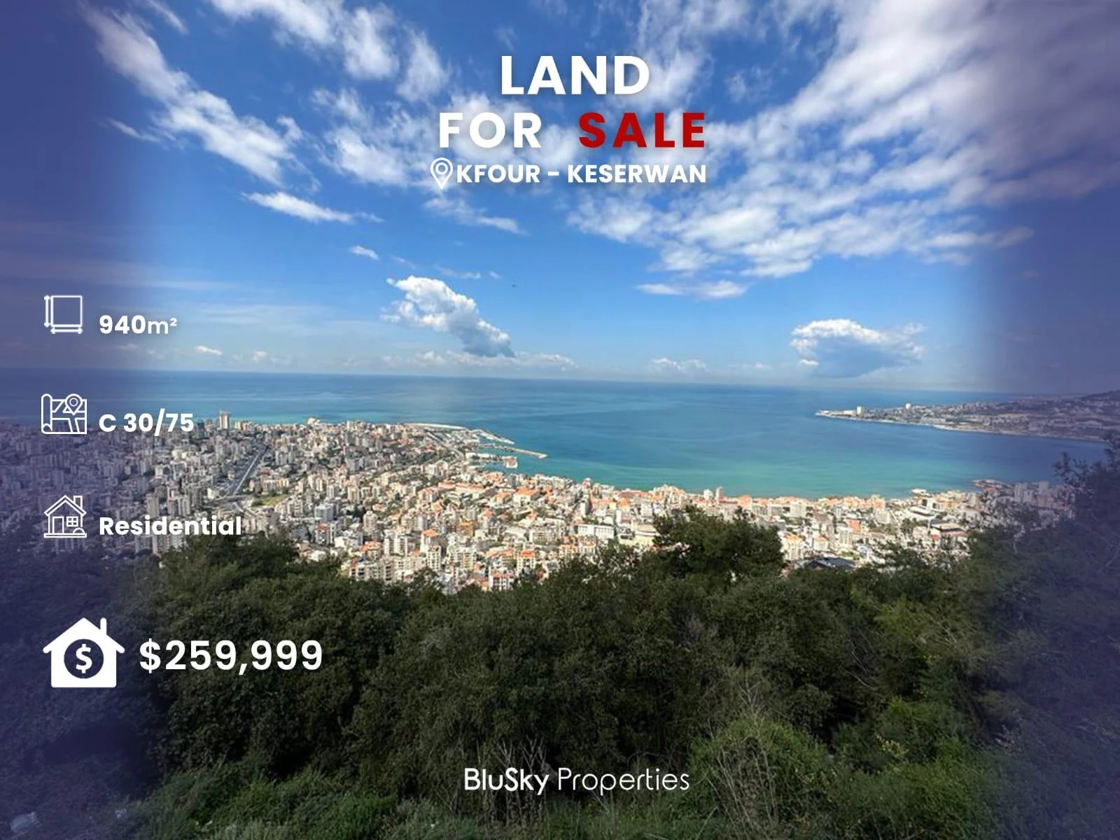 Land 940m² For SALE In Kfour #CA