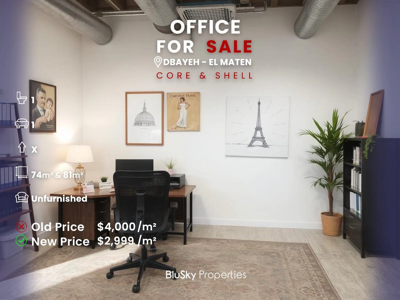 - Price for SALE, Core & Shell: 2,999$/m² (USD CASH only).